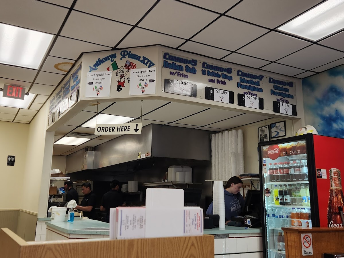 On our way through the area and randomly stopped for pizza. Anthony's is in a little strip mall, and was very unassuming from the front. Local spot, nothing fancy but with a surprisingly extensive menu and good lunch specials. We ordered the cheesesteak and two slices...and maaaan they hit the spot! Both were amazing - truly. We were pleasantly surprised. If we lived nearby, we'd be regulars. Also, they carry Coke products so gold star just for that.